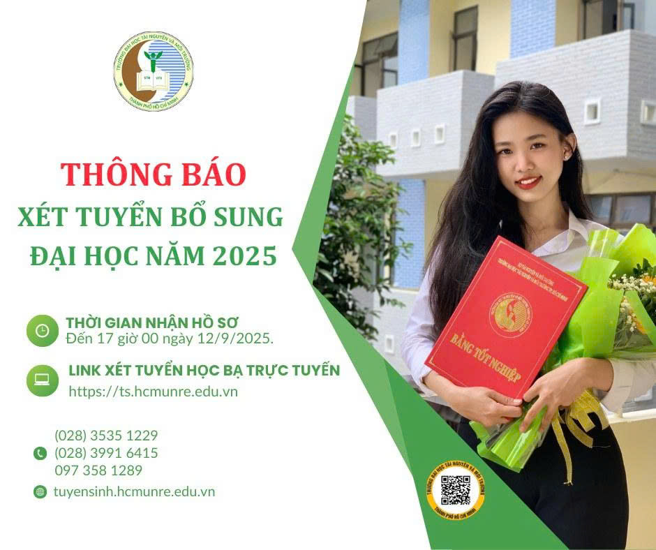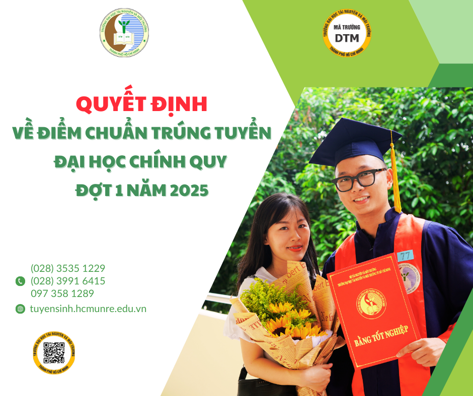 Hội đồng tuyển sinh Trường Đại học Tài nguyên và Môi trường Thành phố Hồ Chí Minh ban hành quyết định Công bố điểm chuẩn trúng tuyển trình độ đại học chính quy các ngành của Trường Đại học Tài nguyên và Môi trường Thành phố Hồ Chí Minh xét tuyển dựa theo kết quả điểm thi THPT năm 2024 đợt 1 (tính theo thang điểm 30).